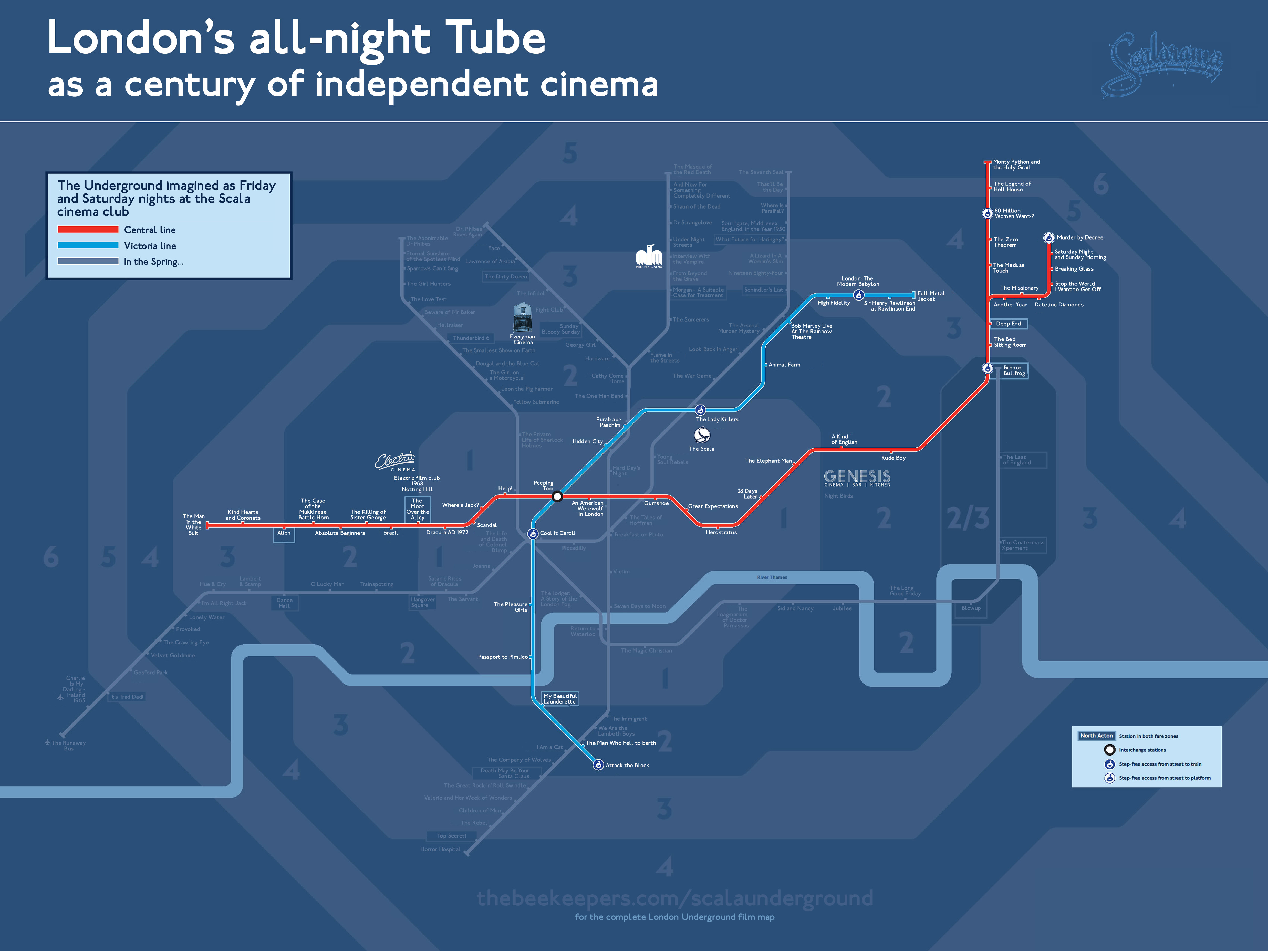 FREE, printable colour Night Tube map of London Underground films. The entire London Underground films map on Google Maps.